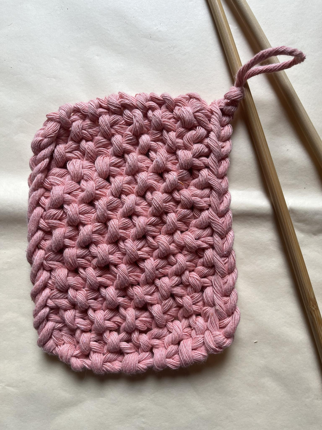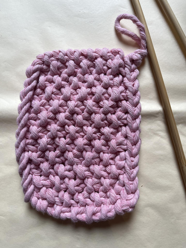 Le point de tricot choisi (point de riz) procure une légère sensation de massage, idéal pour prendre soin de ta peau tout en respectant la planète.