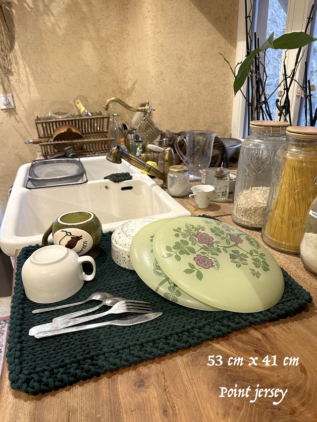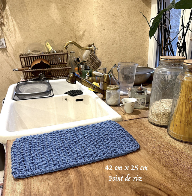 💡 Important : l'évier et le plan de travail sur les photos sont beaucoup plus grands que la moyenne (évier 90×54 cm, plan de travail 75 cm de profondeur), certains tapis sont vraiment plus grands que ceux du commerce, pensez à bien mesurer votre espace avant de choisir ✨