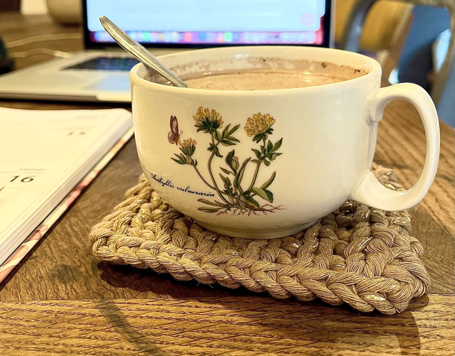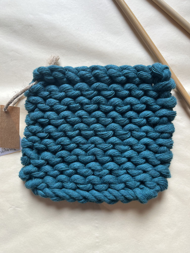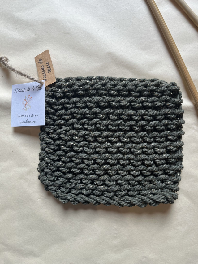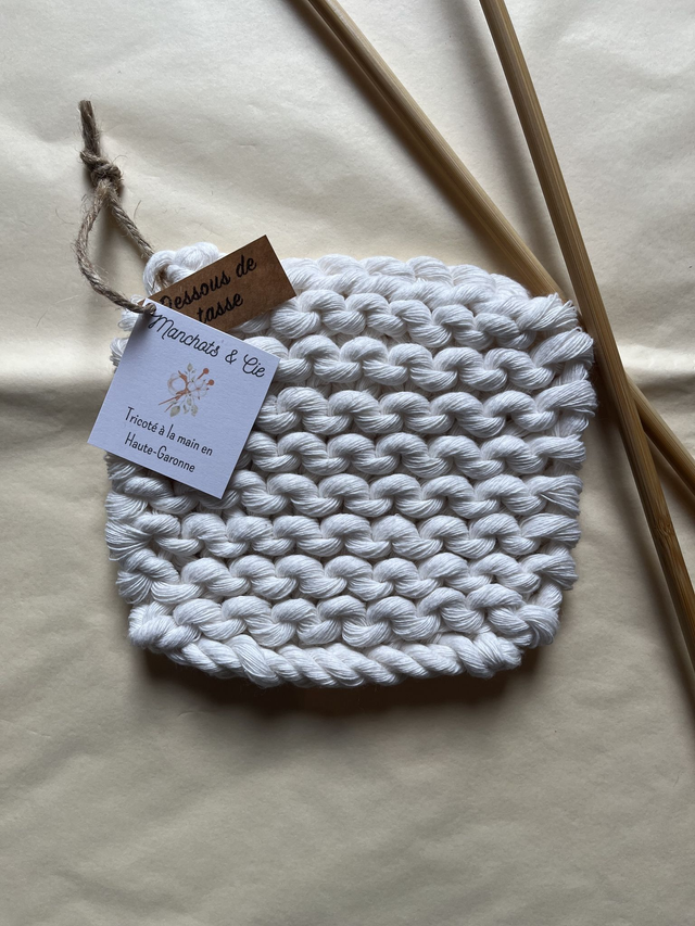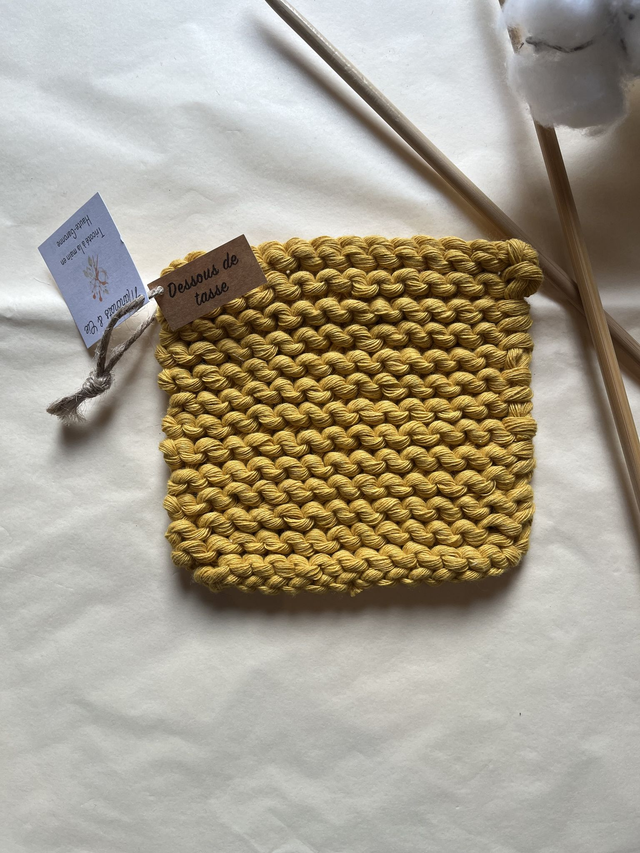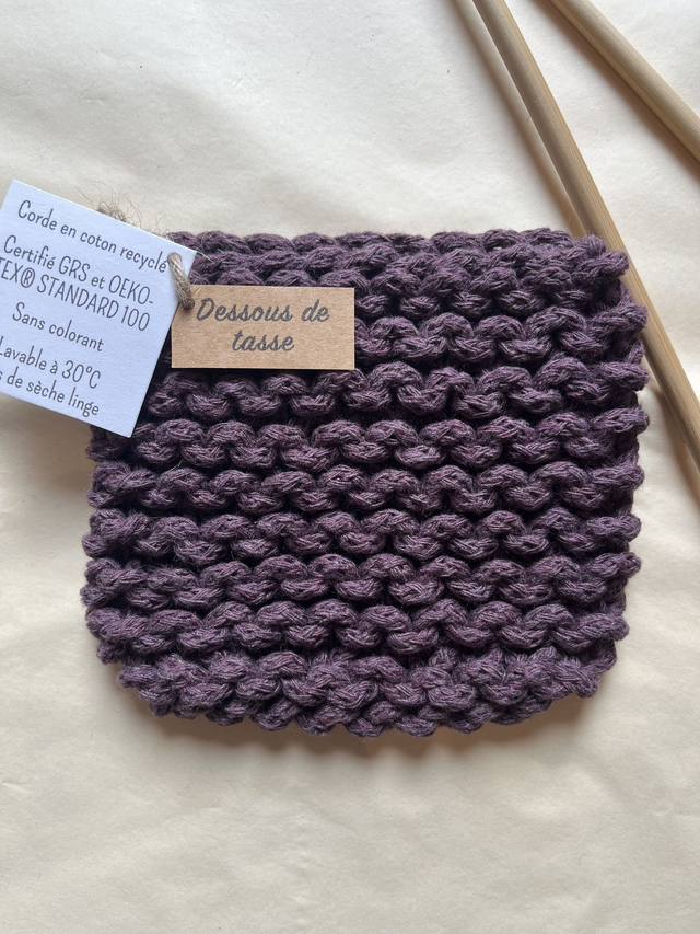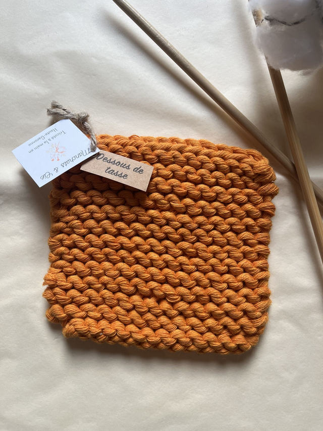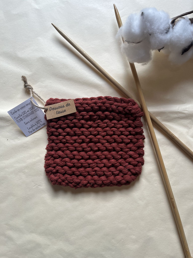 Ces dessous de tasse sont réalisés en corde de coton recyclé, tricotés à la main. Ils apportent une touche chaleureuse et naturelle à votre table, votre coin café ou vos moments cocooning de l’hiver.
